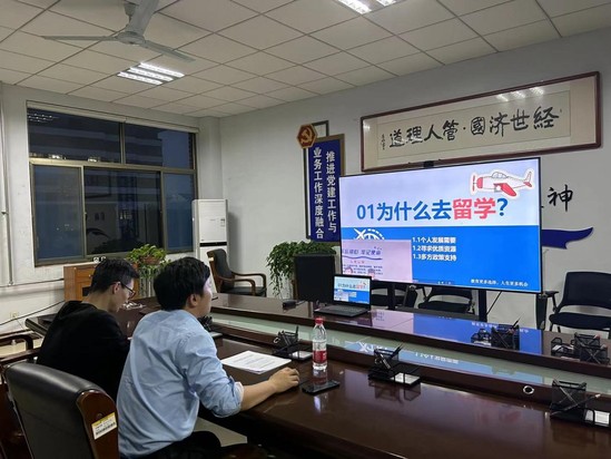 会议伊始,廉潘红老师向毕业生家长分析了当前的就业形势、就业现状,明确了就业方向,并表示希望学生充分利用好国家、地方层面保就业、促就业政策,社会提供的优质就业资源,高校搭建就业平台,完成高质量就业。其次,刘彬老师分别从政策、案例、红利等方面就出国留学和征兵入伍为家长们做深入解读。随后,刘彬老师为家长介绍了出国留学的基本情况并结合自身案例分析了出国留学的利与弊,通过大学生应征入伍典型事迹,从为什么去当兵,当兵后会怎么样,以及怎样去当兵三个角度向家长生动诠释了当兵是实现高质量就业的重要途径。最后,廉潘红老师总结发言,希望有出国意愿的家长和学生积极咨询,并鼓励学生踊跃参军。