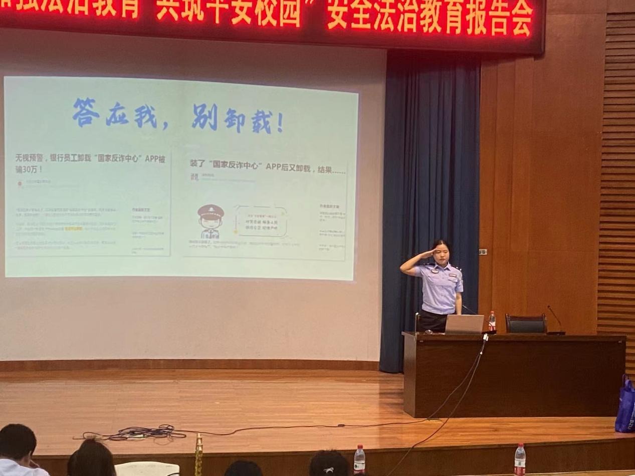 活动伊始,赵警官对遇到诈骗时如何应对、如何处理等问题进行了详细讲解,告诫学生们谨慎对待电信诈骗,不要随意领取微信红包、浏览网址。同时提醒大家,若遭遇电信诈骗,予以准确无误地将对方银行卡号、姓名记录及时向附近公安机关报案,以便警方帮助受害人追回被诈骗款。随后,赵警官通过分析电信诈骗的真实案例告诫学生们要增强法治观念,提高法治意识。最后,于峰书记做总结发言,并强调安全法治教育的重要性。