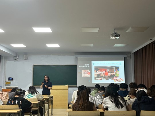 活动伊始,王玉珏老师结合自身经验进行讲解,生动地向在座师生强调了雅思的重要性并介绍关于雅思学习的相关信息。随后,解答学生关于雅思学习的疑惑。最后,老师对学生雅思水平进行简单测试,从而有针对性地进行学习和练习,增进大家对雅思的了解。