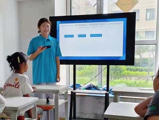 在滨州市住建局暑期托管班,团队成员对的同学们进行了“推普+防溺水”为主题的宣讲活动。活动中,团队成员组织学生们观看防溺水安全教育宣传短片,带领学生学习防溺水安全教育歌,讲解防溺水安全防范的知识和发生溺水时自救自护的方法。此次活动,学生们增强了防溺水安全意识,掌握了防溺水知识技能,提高了自救互救能力。