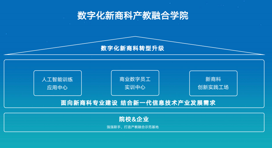 2023年4月以来,我院与科大讯飞经过4轮现场会议研讨,共同制定了共建数字经济产业学院战略合作方案,重点依托科大讯飞的国家新一代人工智能创新中心,开展我院学生数字技能的培养,涵盖数字基础素养、数字工具应用能力、数字场景挖掘、数字产品设计训练能力、数字思维和领导力。合作项目采用校企共建的方式进行,以全面提升商科学生数字技能为目标,以满足学校数字化新商科专业群建设升级为导向,建设商业数字员工应用中心、人工智能训练中心、产业创新实践工场。