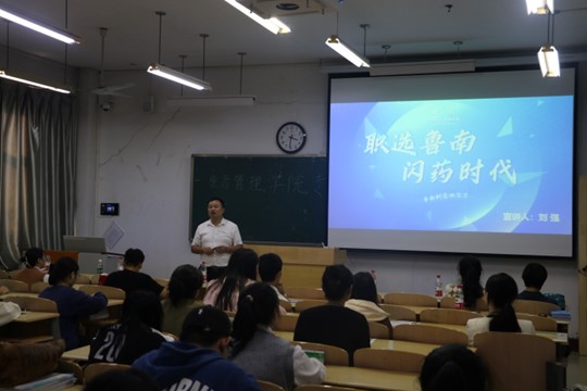 首先,惠民信誉楼有限公司、鲁南制药有限公司以及光大银行三家企业围绕公司历史、招聘岗位、薪资待遇等毕业生感兴趣的话题展开宣讲,他们从用人单位的视角帮助毕业生解析行业发展趋势,并提出就业建议。