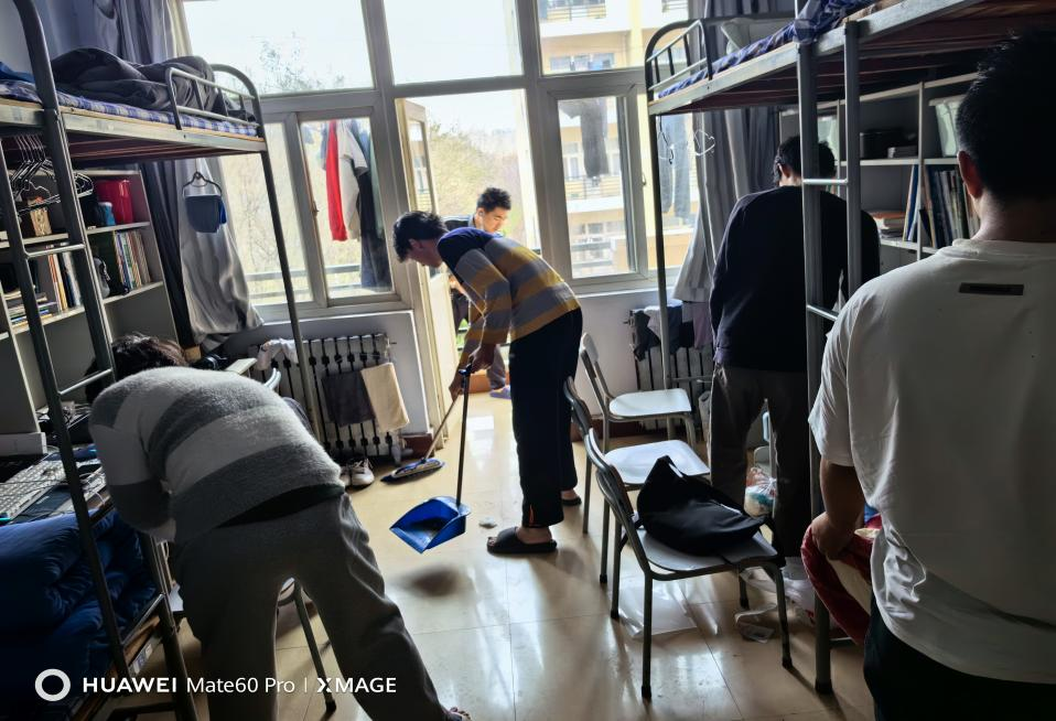 在卫生大扫除活动中,全体学生积极行动,对宿舍公共区域的地面、洗漱间、卫生间等进行了全面清扫,同时将宿舍内部物品摆放整齐,分类归纳,仔细清扫地面灰尘碎片,及时清理杂物废物防止病菌滋生,同时开窗通风换气,确保宿舍环境整洁安全。同学们明确分工,积极合作,尽心尽力,不怕脏、不怕累,做到宿舍卫生不留死角,积极完成大扫除任务,整个宿舍变得更加整洁有序。大扫除过后,宿舍面貌焕然一新,整洁干净,同学们用自己的双手给“温馨的家”增添了一份别样的温暖。