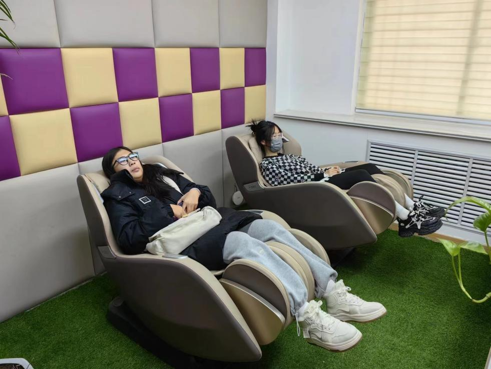 活动伊始,在大学生心理健康协会相关工作人员的带领下,学生们有序参观了寓心家园的按摩室、阅览室以及交谈室,并且积极参与体验,了解了多种情绪解压方式,如按摩椅放松,读书分享、交流心得。经管学子在本次体验中也掌握了化解心理压力、释放紧绷情绪的方法。