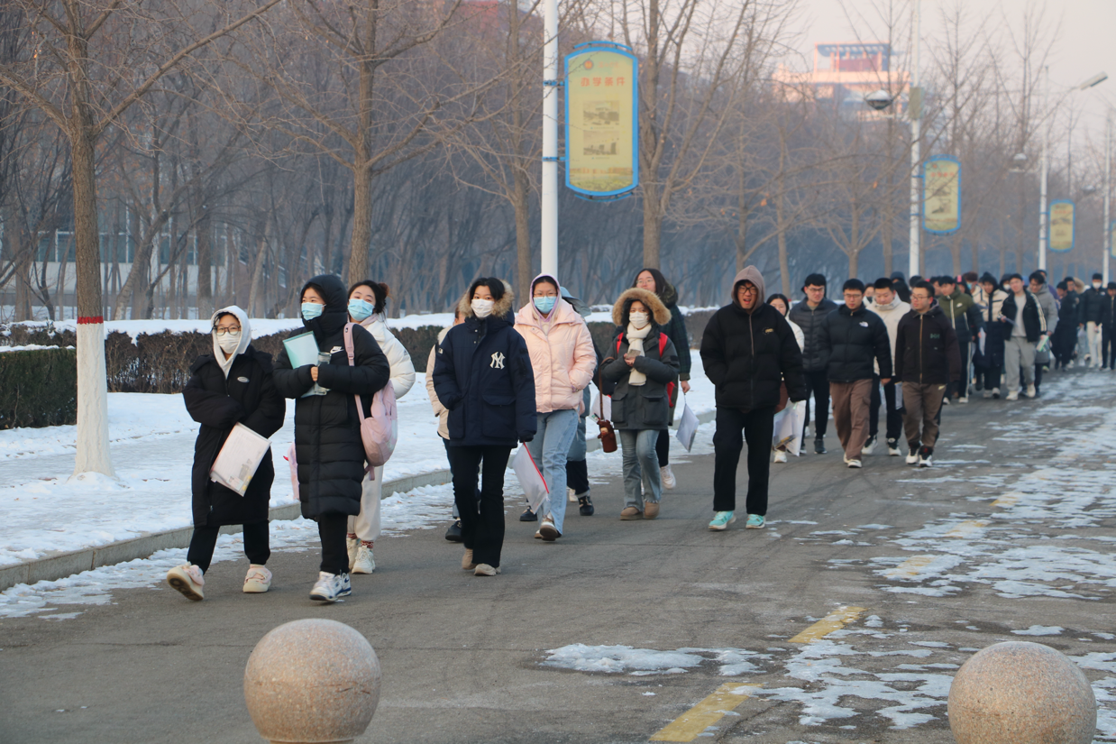 我校考点按国家要求实行二次安检,严禁携带书包等与考试无关的个人物品进入考场,学校在警戒线外设立了存包处及咨询服务点。寒风虽凛冽,但挡不住经管人的温情。遵循“以考生为本”的原则,英国365集团公司的志愿者们齐心协力,积极热情,耐心细致为考生们解答疑惑、提供帮助。全方位的暖心服务获得了考生的一致好评。
