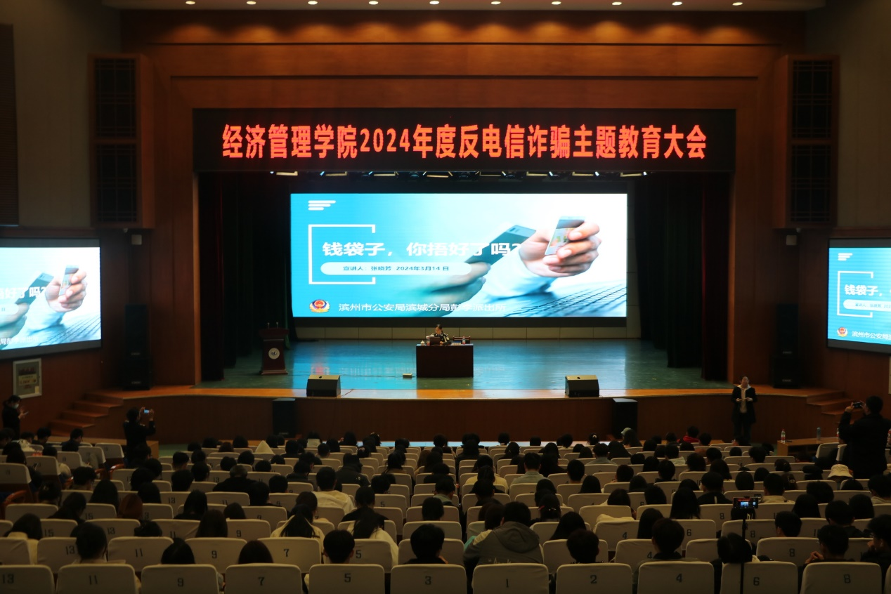 为进一步防范电信诈骗,提高学生安全意识,3月14日,英国365集团公司在学苑会堂召开2024年度反电信诈骗主题教育大会。经济管理学院党总支副书记苏成荣、正科级辅导员王胜、辅导员谭雨婷和部分学生参加此次会议。