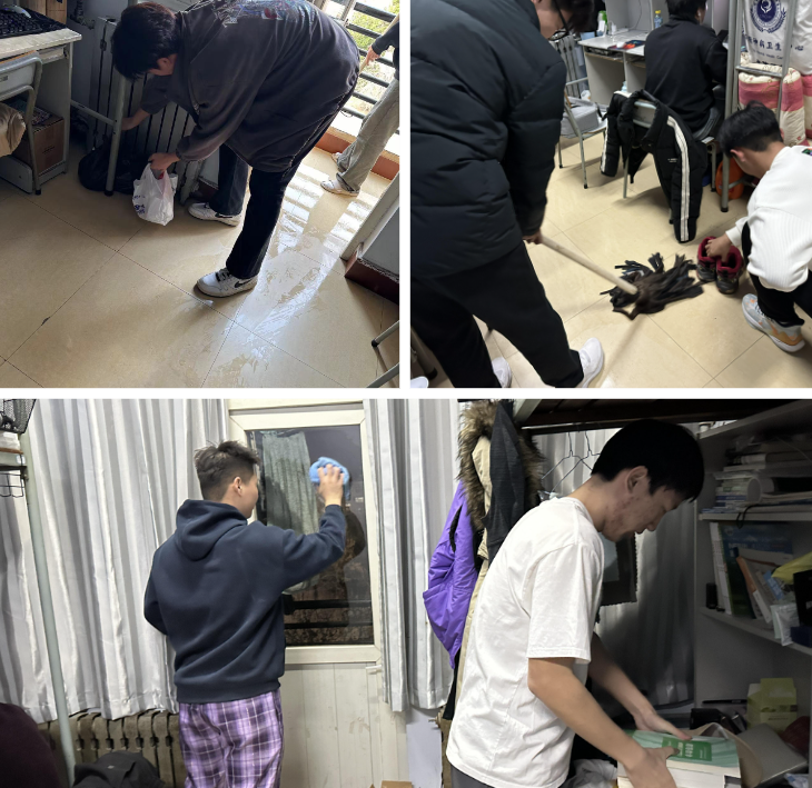 在卫生大扫除活动中,全体学生积极行动,对宿舍公共区域的地面、洗漱间、卫生间等进行了全面清扫,同时将宿舍内部物品摆放整齐,分类归纳,仔细清扫地面灰尘碎片,及时清理杂物废物防止病菌滋生,同时开窗通风换气,确保宿舍环境整洁安全。同学们明确分工,积极合作,尽心尽力,不怕脏、不怕累,做到宿舍卫生不留死角,积极完成大扫除任务,整个宿舍变得更加整洁有序。大扫除过后,宿舍面貌焕然一新,整洁干净,同学们用自己的双手给“温馨的家”增添了一份别样的温暖。