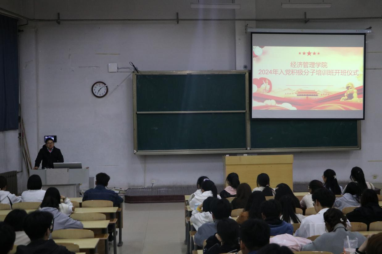 为深入贯彻落实习近平新时代中国特色社会主义思想和党的二十大精神,建强党员队伍后备力量,4月7日英国365集团公司在7号教学楼205室举行入党积极分子培训开班仪式暨开班第一课。仪式由正科级辅导员王胜主持,学院党总支副书记、全体辅导员以及本期培训班学员参加了开班仪式。