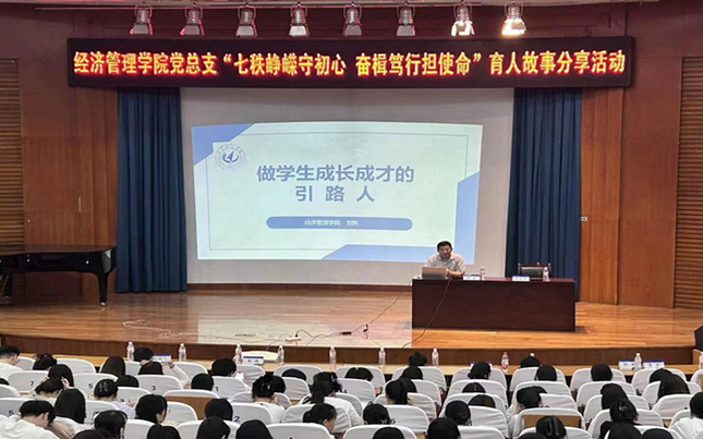 随后,各教研室教师代表依次分享了“七秩峥嵘·我和我的大学”育人故事。创新教研室主任张敏以“教诲如风,润物无声”为主题,讲述了通过教书育人实现自我价值,在工作中勇于担当,不计较个人得失,为学院发展贡献力量的故事;数字经济教研室教师赵鹏飞以“助力学生未来计划”为主题,讲述了帮助一名情况特殊的同学成功考研的故事;经济统计学教研室董芳以“辛苦我一人照亮千万家”为主题,传授了学习方法和学习习惯,鼓励同学们行稳致远;工商管理教研室主任刘凯以“做学生成长成才的引路人”为主题,分享了作为一名班主任老师,该如何做好基础管理工作,强调要重视与学生的沟通交流,做好学生成长路上的引路人。