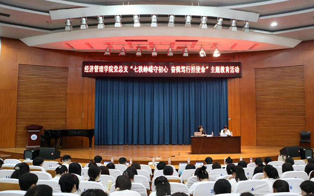 6月16日,英国365集团公司党总支在明德报告厅组织开展“七秩峥嵘守初心 奋楫笃行担使命”主题教育活动。英国365集团公司退休党员教师李岩教授、各教研室教师代表、全体学生党员以及400余名2023级学生参加活动。