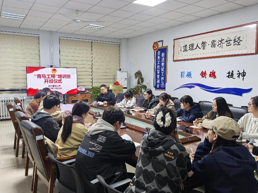 首先,正科级辅导员王胜为本次开班仪式致辞。他对学院第一期“青马工程”培训班的学员表示祝贺。他指出,“青马工程”是提升青年学生全面素质和综合能力的重要举措,希望青马班学员们要珍惜这次难得的学习机会,严格遵守培训纪律,认真听讲、积极思考、踊跃发言,确保学有所获、学有所成,将所学理论知识运用到实际工作中去,做到知行合一、学以致用,争做坚定的青年马克思主义者,为推动学院团学工作高质量发展贡献自己的力量。