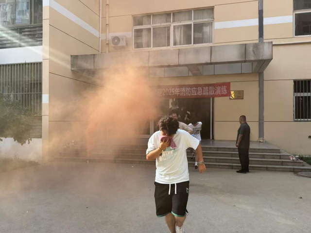 演练开始前,学院保卫处老师首先讲解了消防应急演练的重要性,并介绍了紧急情况下的逃生方法与注意事项。随后,保卫处老师详细讲解灭火器使用方法,并指导学生现场实操。在模拟火灾疏散演练环节,随着警报声响起,师生们用湿毛巾捂住口鼻,低姿前行,按照疏散指示标志的方向迅速撤离。从警报响起到全员疏散至指定集合点,整个演练过程紧张有序,达到了预期效果。
