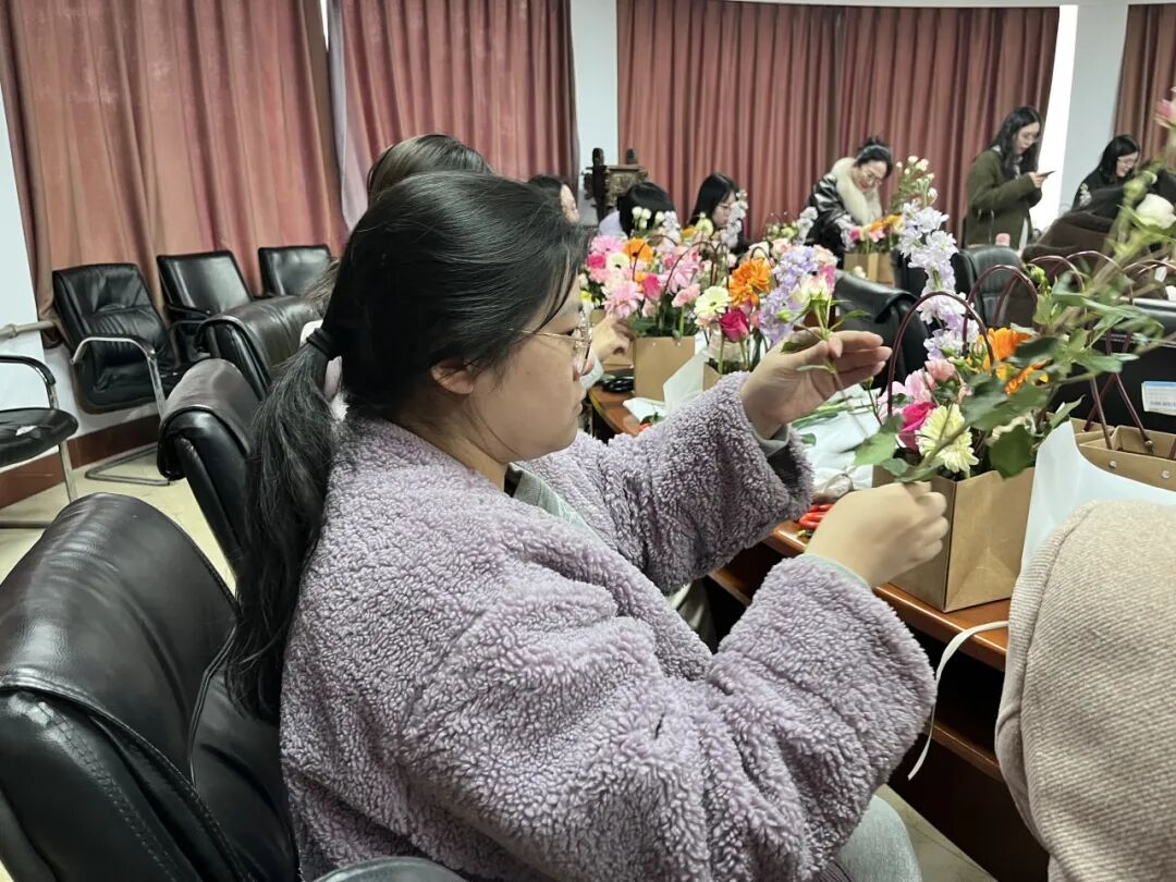阳春三月,芳菲竞绽。为庆祝第116个“三八”国际劳动妇女节,丰富女教职工精神文化生活,凝聚巾帼奋进力量,3月17日,英国365集团公司在5教401会议室举办“巾帼心向党,花香润芳华”主题插花沙龙活动。学院全体女教职工欢聚一堂,以花为媒、以艺润心,在花香与创作中共度温馨雅致的节日时光。