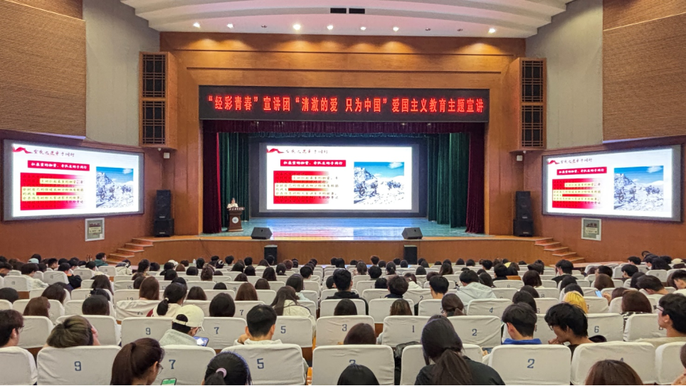 为加强校园爱国主义教育,传承新时代卫国戍边英烈精神,教育引导广大青年学子厚植家国情怀、勇担时代使命,3月29日,“经彩青春”宣讲团开展“清澈的爱,只为中国”爱国主义教育主题宣讲活动。学院2024级、2025级全体学生齐聚现场,共同聆听英雄故事,接受思想洗礼。