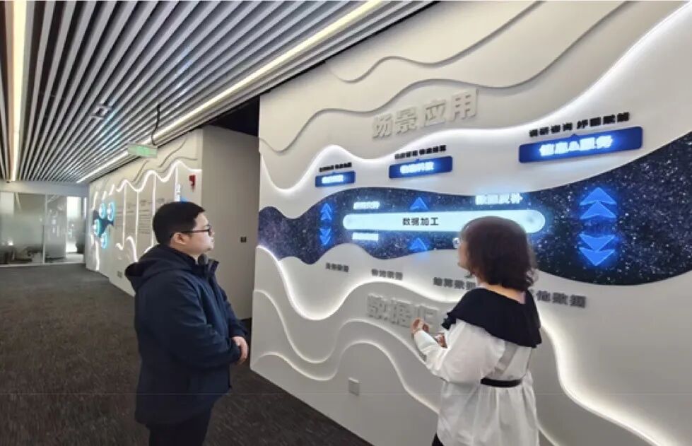 随后,学院一行前往山东云小华数字科技有限公司,实地参观了数字产业实训基地与企业文化展厅,近距离了解企业发展历程、核心产品矩阵及在AIGC技术应用、数字营销等领域的科技创新成果。